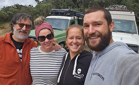 Als wir einen weiteren Tag warten mussten, fuhren wir mit unseren beiden Troopies durch den nächstgelegenen Paramo. Dies ist eine Art von Ökosystem, welches nur in bestimmten Regionen Kolumbiens, Venezuelas und Ecuadors auf über 3000 Metern über Meer gibt. Als wir ankamen, hatten wir gerade einen Brillenbären verpasst, den eine Gruppe Fahrradfahrer keine halbe Stunde vor unserer Ankunft gesehen haben wollte. Trotz Einsatz von Teleobjektiven, Feldstechern und sogar der Drohne konnten wir den Bären leider nicht mehr sehen. Dafür genossen wir ein Gourmet-Picknick und die gute Gesellschaft. Nach den drei Tagen mit Rob und Andrea fiel es uns sehr schwer, uns von ihnen zu verabschieden. In der kurzen Zeit waren sie irgendwie fast wie Familienmitglieder geworden. Und wir bestellten bei ihrer Overlanding-Accessoires-Firma noch ein neues Kleidungsstück für Biest...