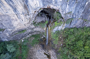 In der Höhle hat es wiederum eine Hängebrücke (diesmal etwas stabiler), sowie einen Hexenkessel, Sitzgelegenheiten... und eine Aussicht! Hier stürtzt der Fluss nämlich, aus der Höhle heraus, in mehreren Schritten fast 300 Meter in die Tiefe.